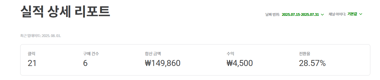 7월은 수익만 놓고 보면 아쉬웠지만, 제게는 쿠팡파트너스 여정에서 가장 중요한 달이 될 것 같습니다.